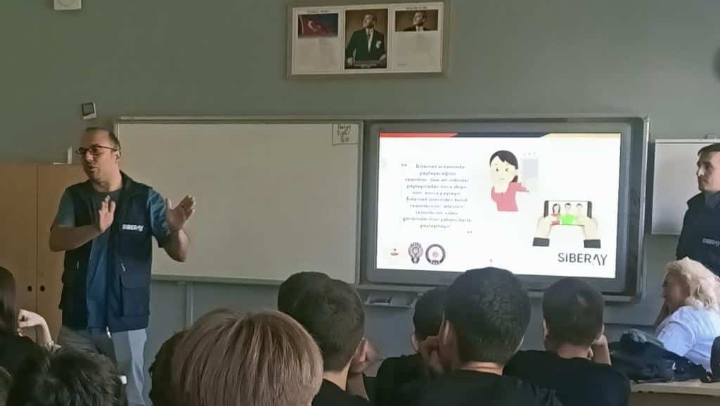 Siberay faaliyetleri kapsamında;Siber Suçlılarla Mücadele Daire Başkanlığı görevlilerince,okulumuz 8.sınıf öğrencilerine yönelik siber farkındalık semineri verildi.Seminerde,internetin sağladığı kolaylıklarla birlikte karşılaşılan sorunlar,kontrolsüz kullanımın sonuçları,siber suç ve siber zorbalık,sosyal medya platformları ve gizlilik ayarları,şifre ve kişisel verilerin önemi ile teknoloji bağımlılığı konularına değinildi.